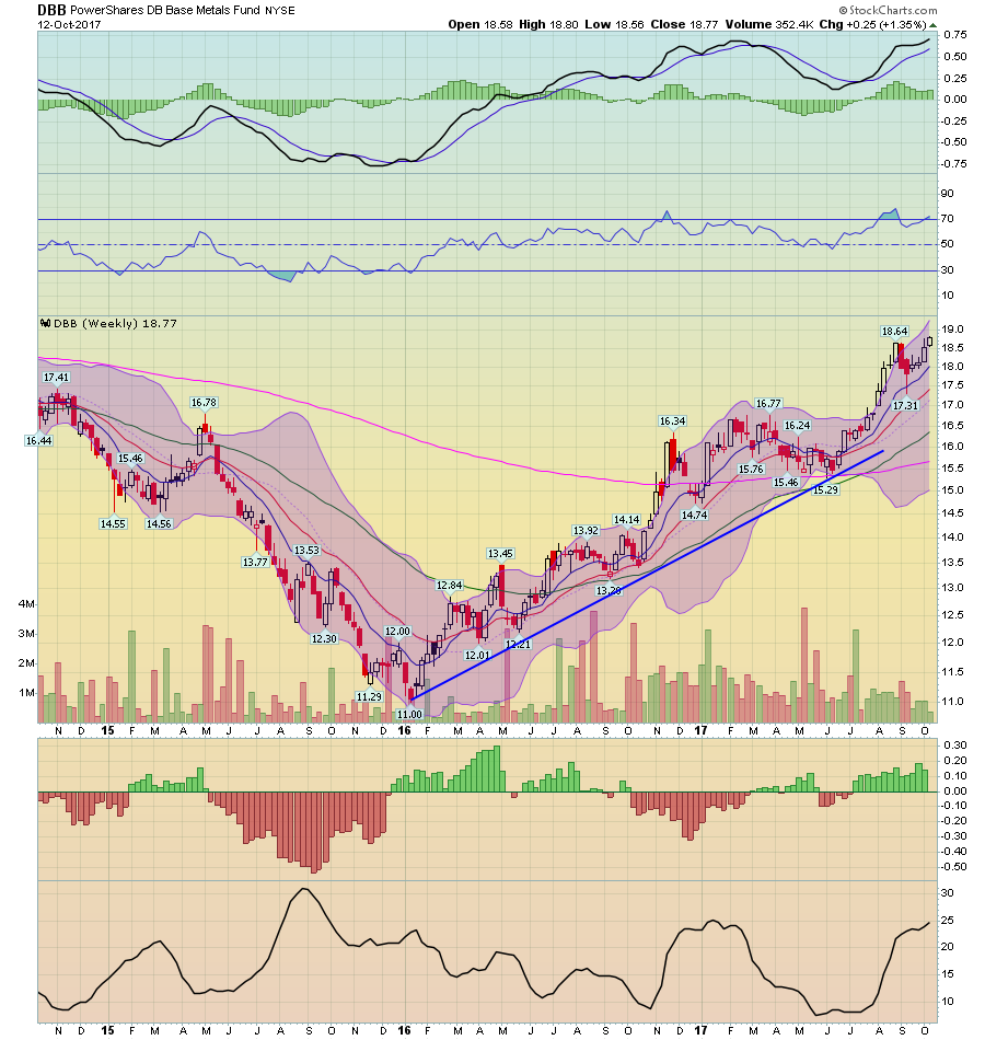 The only major ETF that is showing strength is the industrial metals ETF (this is a weekly chart):
