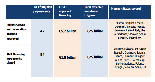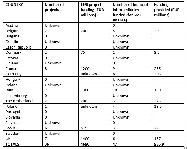 But the content - oh dear, the content. The triumph of image over substance. From the EU-wide State of Play document, here is the total amount invested so far - projects and SME financing - and the countries benefiting from this investment;