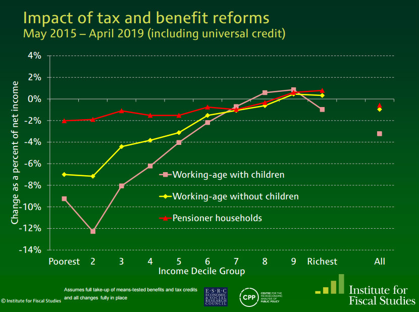 And these charts from the IFS show that the biggest cuts will be borne not by the disabled, but by low-income families with children: