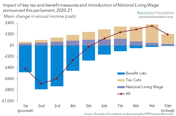 But the Government's U-turn over PIP cuts has unfortunately distracted attention from the real issue. This was by no means the only cut which would disproportionately affect poorer people. In fact as this chart from the Resolution Foundation shows, the distributional effect of successive Budget changes in this parliament significantly penalises the poor and benefits the better off: