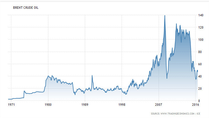 The collapse of North Sea Oil productivity started in 2004. And as this chart shows, that is when the price of Brent crude started to rise - astronomically: