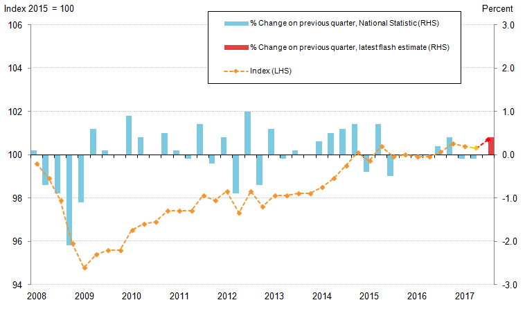 The ONS's latest flash productivity estimate is rather good. Productivity in Quarter 3 2017 was up by 0.9% on the previous quarter. Here's what ONS has to say about it: Output per hour growth in Quarter 3 2017 was the result of a 0.4% increase in gross value added (GVA) (using the preliminary gross domestic product (GDP) estimate) accompanied by a 0.5% fall in total hours worked (using the latest Labour Force Survey data). This fall in total hours was driven primarily by a 0.5% fall in average hours per worker. Yes, yes, I know - economics jargon. Let me translate. ONS in plain English: People are working fewer hours, but they are producing more every hour. Of course, this should be set against the backdrop of persistently low productivity since the 2008 financial crisis. Productivity