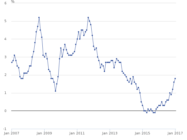 Here is the change in the consumer price index (CPI) for January 2017, according to ONS: