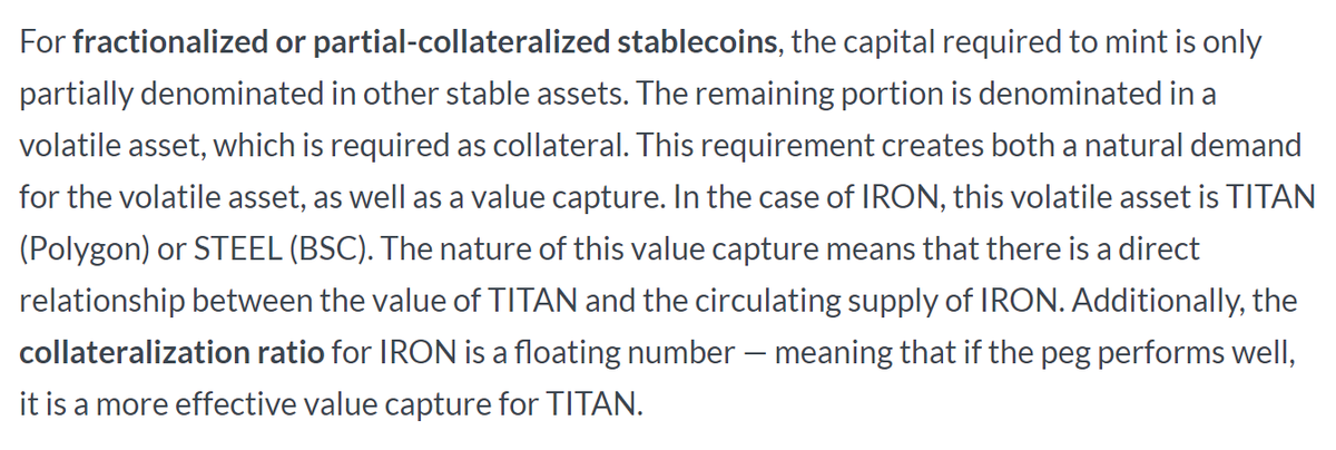 The price of TITAN relies on demand for it as collateral for IRON: