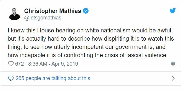 Ted Lieu playing Owens's homage to Hitler probably made an impression on people who already know that Owens is a grifter and that the Republican members of the committee are sleazebags for inviting her but it didn't cancel out the sabotage. The Guardian posted a tweet from journalist Christopher Mathias which nicely summed up the outcome: