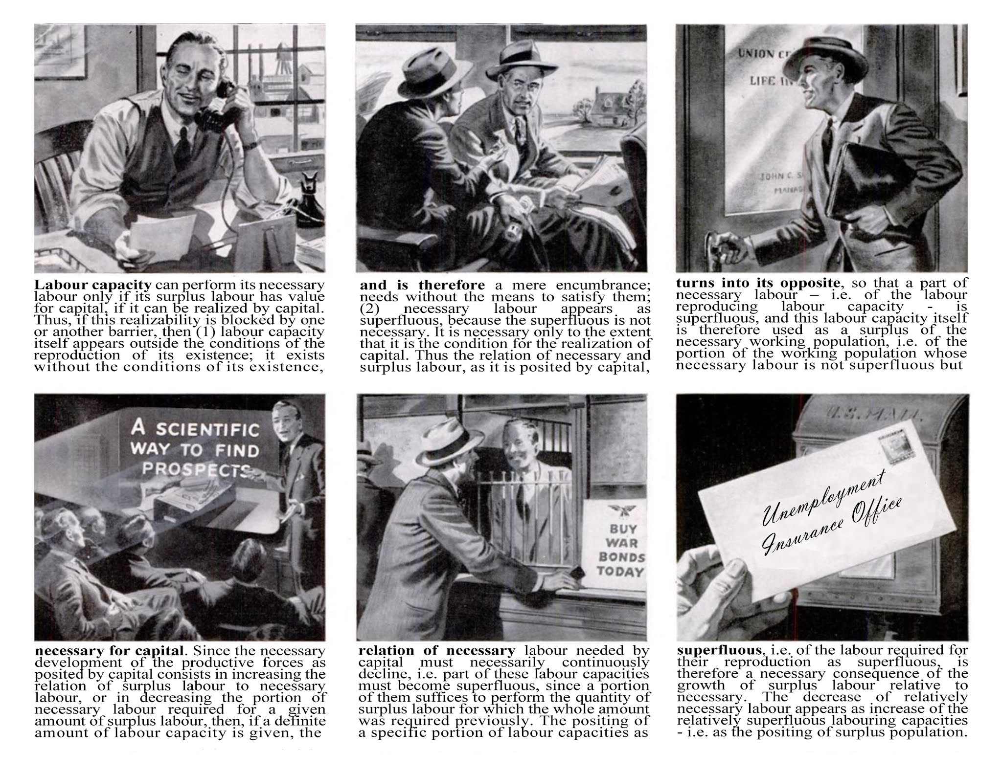 In the graphic at the top of this post, I have broken up the said passage from the Grundrisse into six captions of an almost irrelevant repurposed advertisement from a 1940s LIFE magazine.