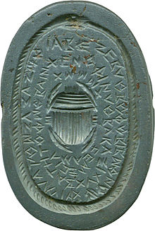 The ouroboros appears elsewhere in Egyptian sources, where, like many Egyptian serpent deities, it represents the formless disorder that surrounds the orderly world and is involved in that world's periodic renewal.[7] The symbol persisted in Egypt into Roman times, when it frequently appeared on magical talismans, sometimes in combination with other magical emblems.