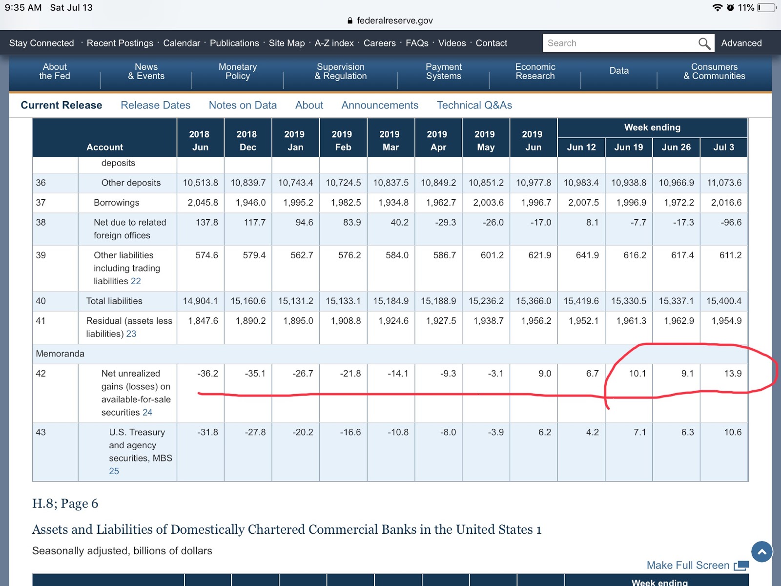 Cut below from the H.8 highlighting nsa Urealized Gains on Available for Sale Securities have already turned positive during the current debt ceiling induced bond rally.