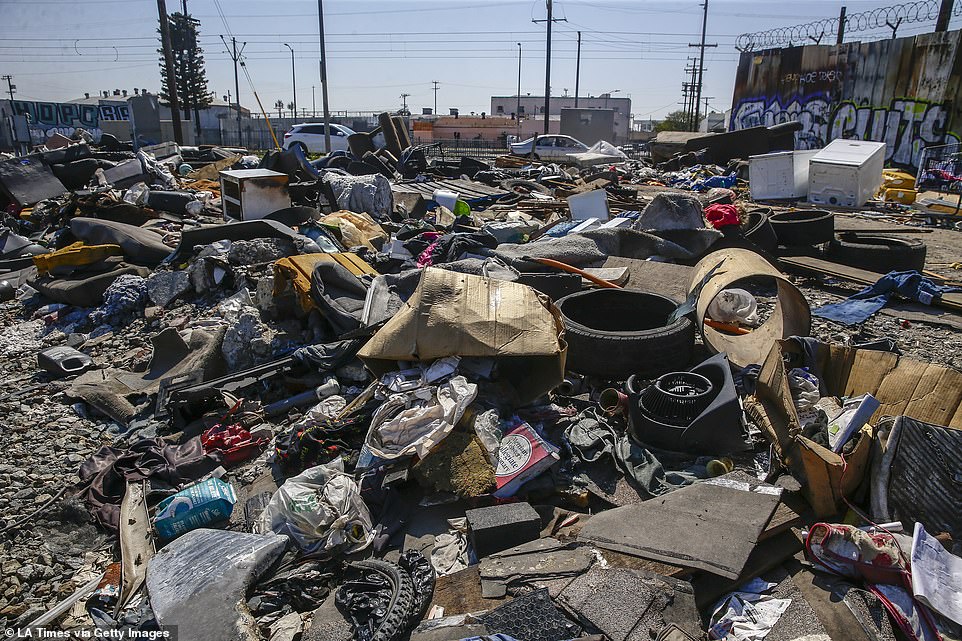 Shocking new pictures from downtown LA capture the huge problem it faces with trash and rats amid fear of typhoid fever outbreak among LAPD