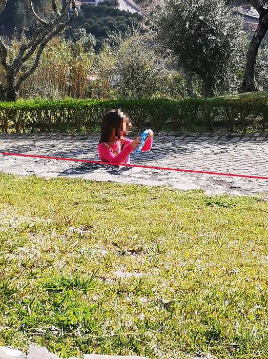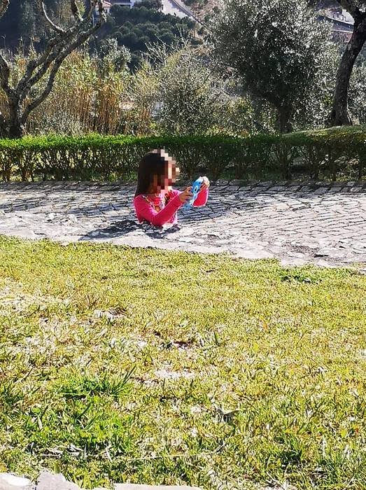 A lot of people can't fathom out this Illusion, but I think the poor photo quality doesn't help.She looks sunk into the ground, but she is leaning on a wall. The top of the wall looks the same as the road, and the grass bank is a high as the wall.