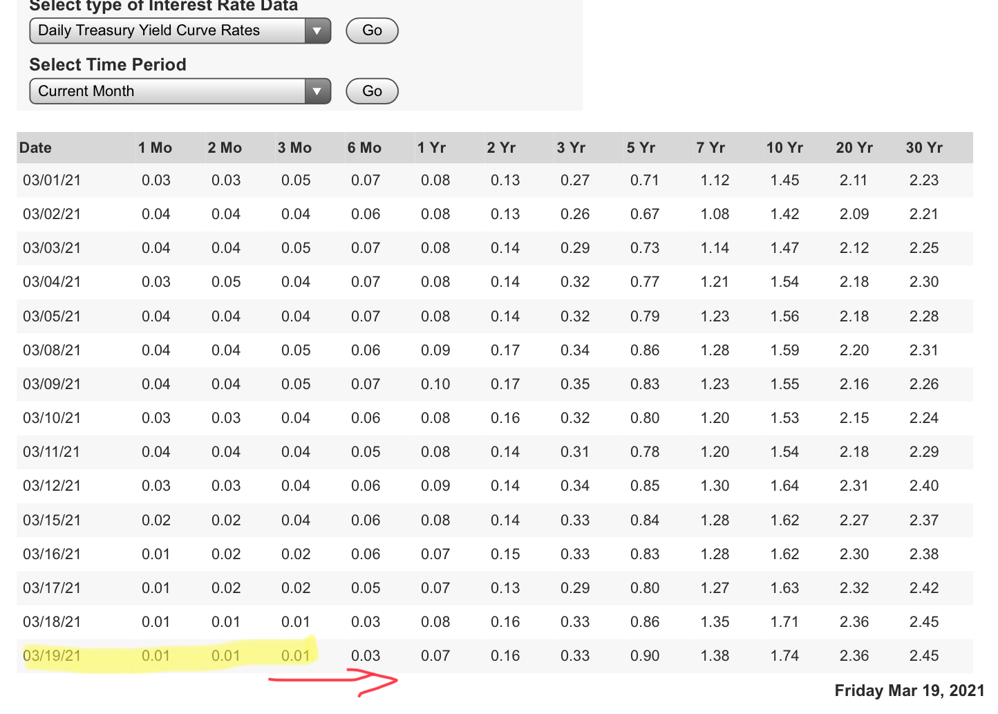 Effective zero reported here out to 90 days (some reports of actual negative rates, Treasury reporting system here probably cannot accept a negative input ?) and lower numbers starting to creep out to the right axis of time.... meanwhile Mike reporting everyone is short the 10-yr go figure.. US going Mike’s “full Japan!”? imo still not out of realm of possibility....