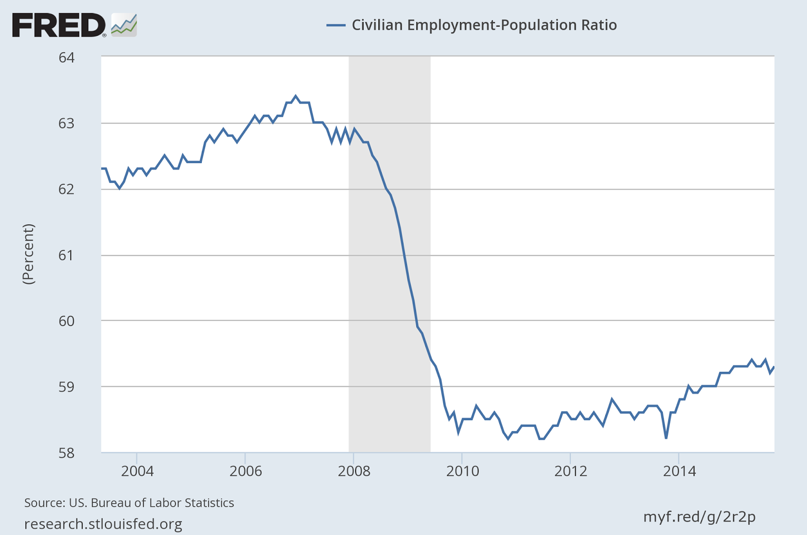 New Employment Situation Report is out. Not bad, given the last couple of months. In October, total nonfarm payroll employment increased by 271,000 and the unemployment rate is at 5%. The employment-population ratio, which seemed to start to inch up last year, however, now looks again stagnant. Even though it seems markets are happy with job creation above 200k per month, we need something more like 400 for a healthy recovery, and to bring the employment-population ratio up. Earnings have inched up a bit. The danger here is that Yellen and the FOMC use this to really start hiking interest rates by December, after all she says she thinks "the economy is performing well." The question of course is for whom it's performing well.