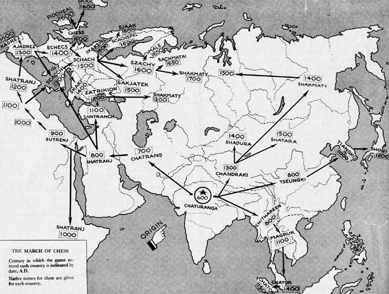 Map above shows the spread of chess from its original invention in India to the rest of Eurasia. There is an interesting analogy here with the diffusion of a game and of technology. Technological diffusion is a slow process, but an essential one, in which a significant part of the improvements are made. Gun technology, which also started in Asia, and discussed here before, is another case in point. And sometimes the latecomer has an advantage (Gerschenkron's the advantage of backwardness, a topic also discussed by Veblen). Nothing much to say about it, just a neat map. For more on the difficulties of understanding technical change go here and here.