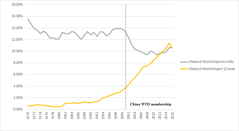 The graph below illustrates the reasons for the concerns in the US and the somewhat erratic, but more combative position of the Trump administration.