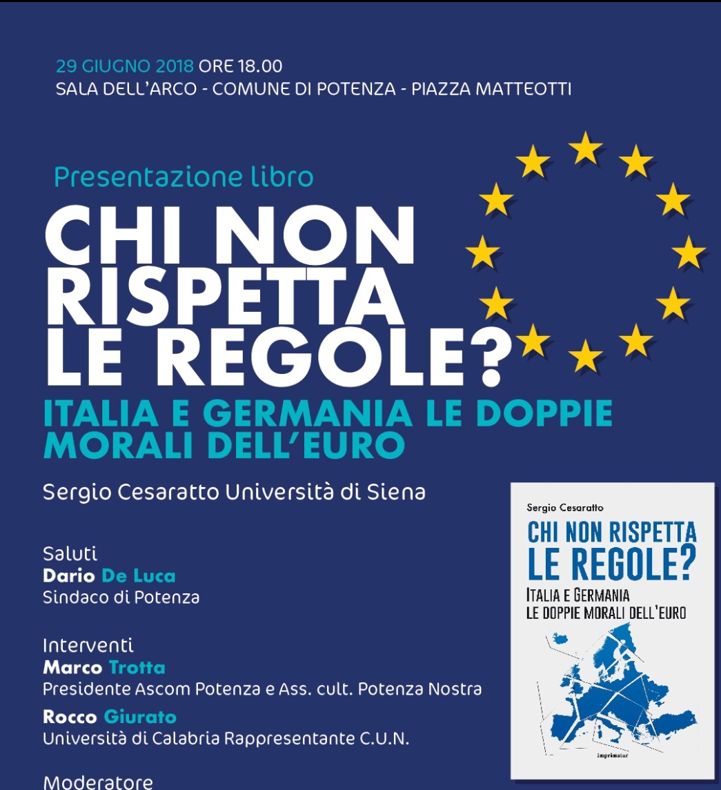 Sergio Cesaratto considers the following as important: Cesaratto, Chi non rispetta le regole, euro, Europa, Potenza, Presentazione, Salerno, Udine
